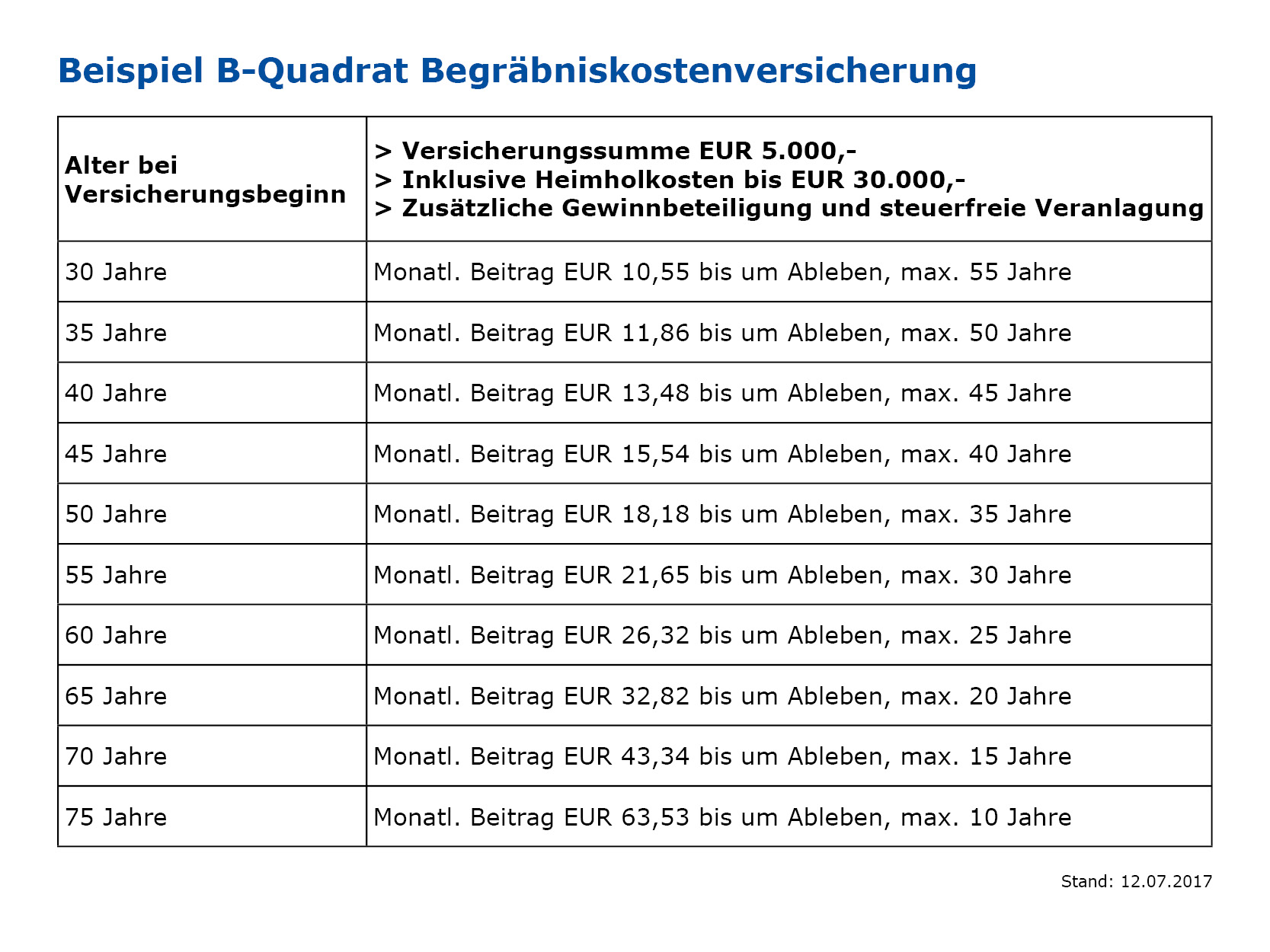 Wie hoch sind die Prämien für eine Begräbniskostenversicherung?